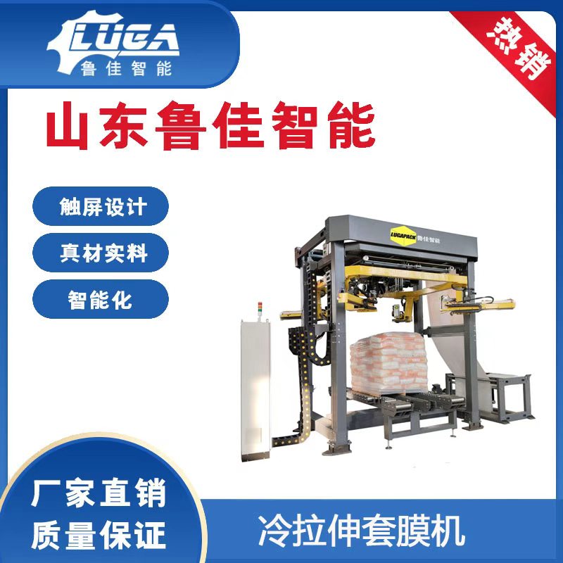 冷拉伸套膜包装机是使用冷拉伸膜对货物自动套袋包装的设备。工作时自上而下套袋,依靠冷拉伸膜自身的特性回缩包装到跺型上面,形成四面~五面包裹。具备防水、防潮、跺型稳固的特点。可以作为自动输送系统或仓储物流系统的包装终端,也可以单独使用。